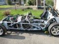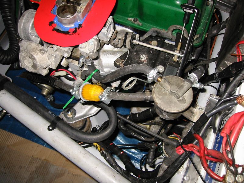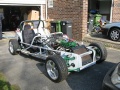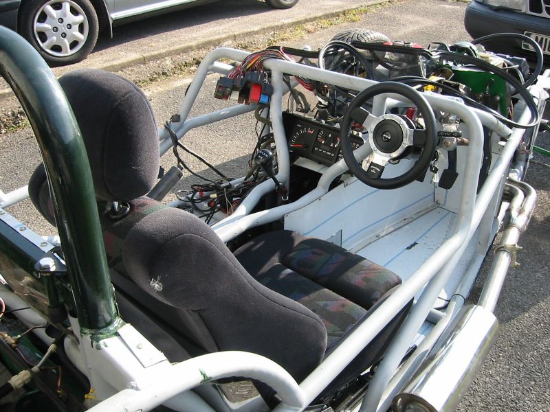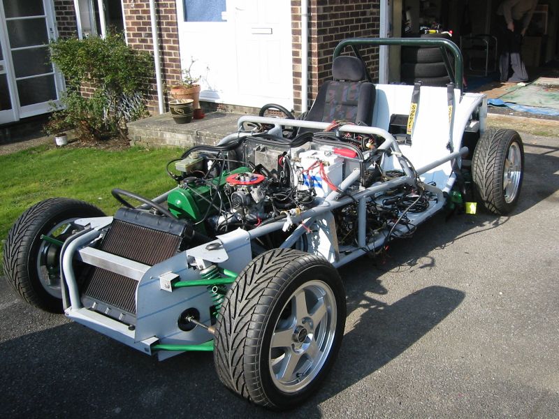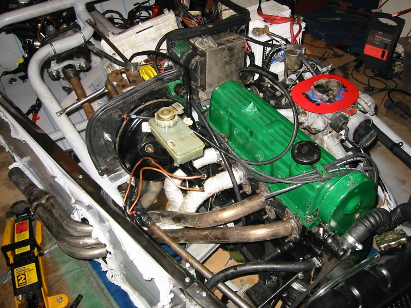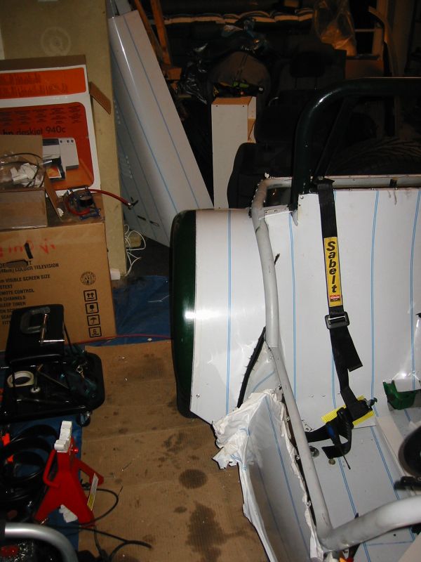 Eastleigh who is currently in the middle of his 2B build; David said a very important thing that needs sharing: "just think of those balmy sunny summer days with a picnic basket on the back and some suitable babe at your elbow. Its just got to be worth it - hasn't it?" Do you know what David? - I think you're right. Anyway back to the build... the push towards starting the car continued this week with the fitting of all the brakes, bleeding them and filling the engine with fluids. None of this was incredibly interesting so I'll gloss over, except for one word of warning: before filling the car with oil, make sure you have put the sump plug back in....(yes I know I'm an idiot - it was late on Saturday night and I was rushing...) The next stage was dropping the loom into the passenger footwell and wiring and powering it up. All the wires were in place but I wasn't getting power to the ignition switch. Following the wiring diagram and making judicious use of a continuity tester, I found the one red wire I hadn't fitted to the battery terminal, fitted it and the car turned over for the first time in 5 or 6 months. It didn't fire but then I would have been surprised if it did - there were no spark plugs fitted ;-) I wanted to start by getting the car powered and turning over then check for sparks before finally adding fuel and testing for ignition. So with the engine turning over, and a friend on his way over for the possibility of the engine starting, I moved to the ignition circuits. I fitted the spark plugs except cylinder 1 and put the HT leads on - the cylinder 1 HT lead was fitted to the spark plug and held against the engine to check for spark - and yep (you guessed it)... nothing. So I went through the first principles of car electrics and checked for power at all the key places starting at the coil and moving forwards towards the dizzy. Power was there throughout the HT side, so it was back to the electrical diagram to check the wiring for the LT side. It turns out that this was detected and managed by the ESC2 module fitted to my car, so I first checked the voltages going into the system - these were all fine, but I had made one assumption that the ESC unit itself would have been earthed by its case - wrong! So with the ignition on, I fitted the stray earth lead and I heard all the stepper motors moving to the primary position... and checking for a spark was successful! This was the big moment: dropping a little fuel into the carb to see if I could get ignition, I turned the key and the engine tried to turn over but all the previous work had killed what little charge the battery had. However in my attempt to turn the engine over I did get a small bang and a puff of exhaust from the engine - which was promising. At this point it was 7pm and I was meant to be at a friend's house for dinner at 7:40. I made the decision to put the battery on charge and come back to it at the early part of the coming week - I cannot believe that the first try would have been successful even if I had jump-started it. 18th February Well it's done - the bloomin' engine only started didn't it! The work on the weekend was fine; the only thing I had wrong was the HT leads were 180 degrees out. With these swapped, and some petrol directly into the carb, the engine started. I couldn't just leave it there, so I fitted the exhaust to give a little back pressure and took some video of the engine. PLEASE NOTE THIS FILE IS ALMOST 2 Mb AND COULD TAKE UP TO 10 MINS TO DOWNLOAD - EITHER CLICK ON THE LINK TO VIEW IN MEDIA PLAYER OR RIGHT CLICK ON THE LINK AND CHOOSE "SAVE AS" TO DOWNLOAD 22nd February So after the excitement of the past week I decided to crack on with tidying the engine bay and fitting the driver's side panel, or at least fit it so the exhaust could be fitted in its final position. It was during this process I realised that I had made a fundemental mistake. Under no circumstances fit and fill the brake master cylinder until after you have fitted the 4 -1 exhaust manifold. I didn't, and this means that when you fit the side panel, there is no way under the sun that the exhaust will fit - it took me a slightly bent side panel and 30 minutes of swearing to realise this. This of course meant I had to undo my work with the brakes, drain the master cylinder, undo it all and fit the exhaust - the exhaust then fits like a dream. I did drive the car outside today and so with some gratuitous use of a digital camera, here is another momentous occasion recorded for my pleasure :) The weekend seemed to be going well so I decided to work on getting the driver's side panel fitted and the corresponding rear wheel arch in place. After watching the videos again, I was still scared of this part of the build - nothing I've done so far really impacts on the look of the car as much as the side panels and the arches. I sat down and looked at the way the videos explained how to do it. I took note of the "problem car" and how Richard resolved the badly fitted arch. This is the order in which I tackled the two jobs: 1. Pop rivet