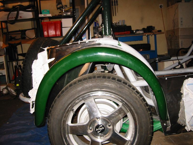 the front end (top edge) of the side panel. Simple, aye? Well actually it wasn't bad at all - the manipulation was a little bit of a pig, and I haven't got the wheel perfectly central, but overall I am happy with the result - I just hope I can make the other side look the same... |