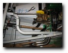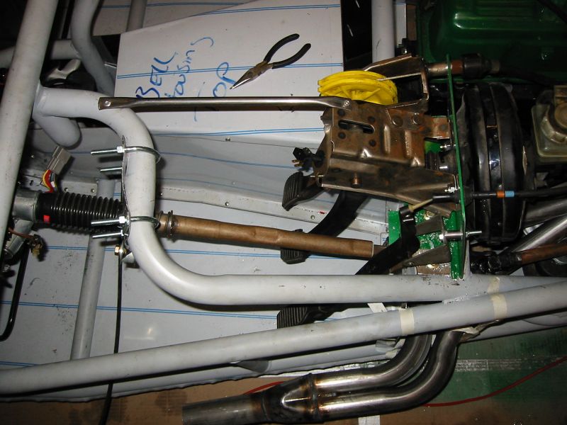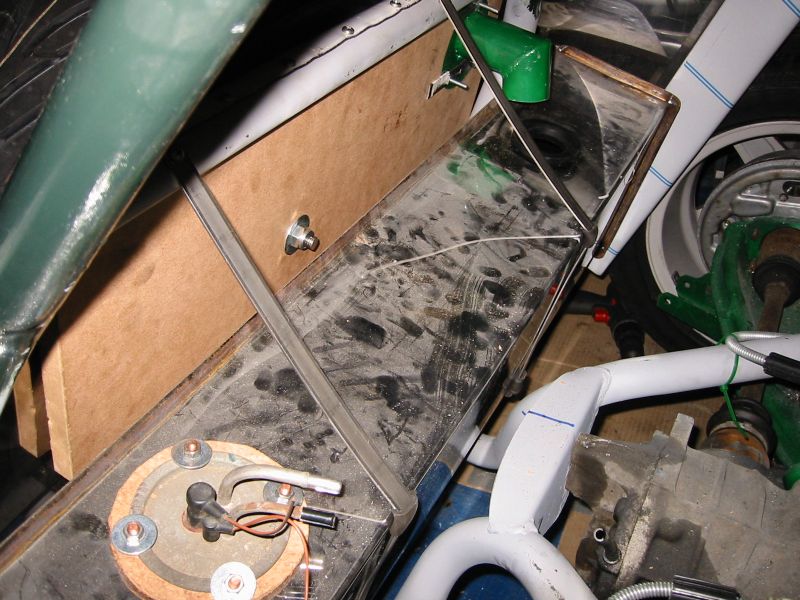 8th January I haven't updated the pages because nothing significant has been completed. I have decided not to fit the side panels until all the pipes and cables have been completed - it seems it would be easier with them off. Here is a quick overview of everything done since last month's entry: STEERING COLUMN: The clip supplied is WAY too long so I built my own out of stainless steel sheet. Not sure if I am really happy with it yet, but it is certainly secure. PEDALS: When I first fitted the pedals they seemed to be very high. In fact when I am sat in the car they are pretty good. I did cut the spacer between the clutch and brake pedals so they could be moved closer together. I also fitted a 10mm OD pipe, flattening the ends to secure the pedal box unit as the video advises. RADIATOR: Ok I admit it -it's not really fitted yet... I have, however, attached the sports bottle for an expansion tank and fitted one of the two flexible hoses. FUEL TANK: Included in this is the fitting of a piece of MDF as a back board, the spare wheel, fuel filler cap and the fuel tank. I haven't decided if the fitting is exactly right, I may want to move the top anchor point lower down so we have more boot space. REAR RIDE HEIGHT: This was a simple matter of following the instructions on the video - I have allowed enough movement to increase the ride height once the springs have settled in. The video does describe fitting spring compressors to reduce the length of the springs, but doesn't tell how much to reduce them by! Anyway I reduced mine by about an inch and hoped this would be enough. Well here are some pictures for it: 31st January This is where it starts getting difficult. The excitement of the early part of the build is waning - in the early days you could see huge leaps in the build, the car took shape. Now that the majority of the main components have been fitted the build seems to become less inviting (the temperature in the garage doesn't help either). However when I made the decision to buy the kit I made the following calculation: 40 kits collected each month for 10 months = 400 kits a year Now that means if everyone finished their kits from RHE there should be literally thousands of 2B's and the like on the road on the sunny days, and that's obviously not the case. This means that there must be a large amount of part-built and nearly built cars lying around in garages gathering dust. I did not want to be one of those people, which means that even though the task isn't so interesting I'm going to stick with it. I have decided that the next major stepping stone is to get the engine started (as described at the start of the month) so all the work that has been carried out is moving towards this stage. Even though the brakes are not required to start the engine I thought it best that they should at least be fitted - as I don't really want to take the tunnel sides off again once I get on with the external body work. So this month has been spent trial fitting items into the engine bay to see if they all fit and where they will end up being positioned - until I am happy with the position of all the pieces I won't be fitting the firewall. My aim is to have the car ready for the big switch-on at the end of February, at which point I hope the weather starts to warm up and handling metal will be a little more comfortable and easier ;-)
