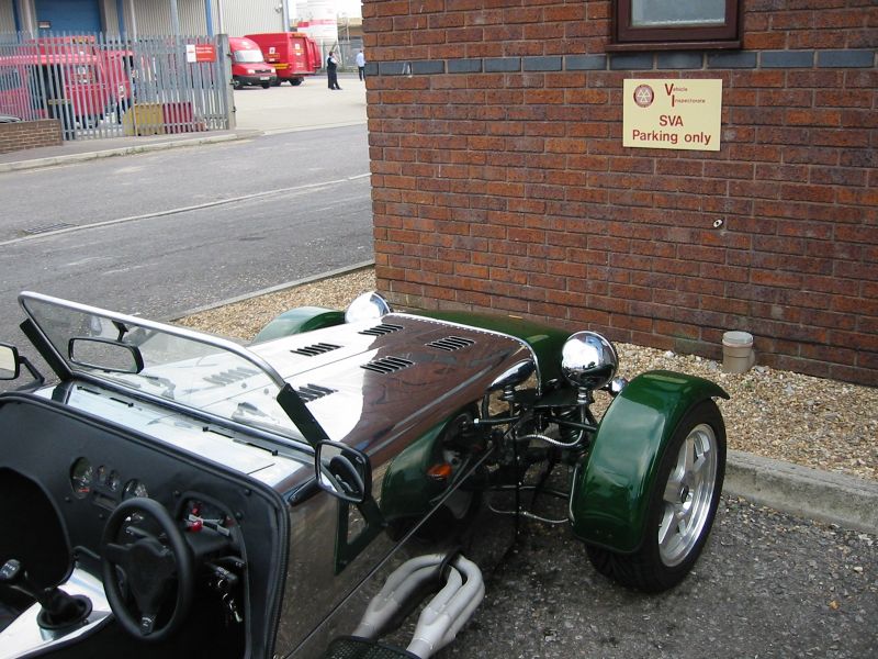 11th May In the post today came my SVA date - May 30th! I know this was the date I requested but didn't actually think I would be given the day I asked for! What's happening in the world if you ask a civil servant for a particular day and they give it to you! Anyway, it's all full steam ahead now to finish everything for the SVA - my aim is to have an MOT the week before to check on emissions and lights etc then SVA on the Friday. The rest of May will be spent finishing off the car and getting an MOT before the SVA. There have been a few discussions on whether an MOT is required to register your car - I see it as a shake-down test; it allows you to drive the car legally to a basic safety test and back - it also gives you a chance to have the light alignment set and make sure your emissions are within limits. Rest of May The first job on my list was to fit the wipers, washers and heaters for the SVA. I decided to go to the test with the windscreen fitted - I know I could have gone without a windscreen and reduced my workload, but I just knew I would never get it all done unless I was forced to :) I had bought two electric blowers which looked to be the perfect job for the de-misters. However, when I looked at them I realised I would need to cut the vents to fit and find some way of mounting them. So I changed my mind and decided to buy a Mini heater from e-Bay and fit that instead. Adding a heater that uses the engine water system has the added benefit of being a secondary cooling system for the engine - I am happy to boil if my engine doesn't. I found a washer bottle from a Vauxhall Nova that seems to fit nicely behind the firewall on the passenger side. I used a wiper system from a Mini but reversed one of the gears so I could have them sweeping from the outside of the screen to the middle. I am unsure whether this is going to pass the SVA but it seems to sweep most of the screen. And then, my water pump decided to leak just before my MOT date! After talking to some of the fellow Hoodies (conveniently-timed regional meeting at local pub...) this seems to be a common occurrence with this engine - especially if the engine has been standing for a decent length of time. My advice would be to buy one and change it - less than £20 and it's just three bolts to change. I have to give some kudos to Steve Loat who came up with a really nice boot cover. I have stolen the design and put together a similar boot lid - ta Steve. I also had a little help with the cutting out from my wife - ta luv ;-) 27th May - MOT day OK - to start with, the car failed - not really upset about this. My aim was to get the car a basic once-over and to highlight any of the really big problems with the car, if any, before the SVA. Also useful just to get the car rubber- stamped by someone more mechanically-minded than me. I failed on suprisingly little: 1. no side lights And that was IT! Not bad for the first attempt. One thing that I did notice was even with just one person in the car, it grounded on the unmodified sump far too much - not just on the lumps & bumps in the road that you expect, but almost all the time. On the trip back from the test centre I must have hit one lump too many and have seriously dented the sump - which then started to leak from the sump plug. Oops... So I think number one job after Friday (SVA day) will be to remove and shorten the sump as described on the RHOCAR website. Or maybe I'll just buy the RS2000 sump which is meant to be shorter and save the hassle - watch in the modifications section! For some reason, my original idea to utilise the Sierra side light design went wrong in one of my re-wiring of the front lights. Rather than going back to try and find out why, I have decided to fit a secondary side light that shines through the clear glass section of the sealed beam units. RHE can supply a different cable that includes a side light attachment - however they would not take a credit card for less than £20 and I didn't have time to wait for them to receive a cheque and return the items. Instead, I am going to use light bulbs dangled behind the sealed beam units that do the same thing. The parking brake is an enigma wrapped in a quandary. It's all new and all fitted but for some reason when the lever is engaged it brakes more efficiently on one side than the other - I have tightened up the handbrake cable but it still seems to be unbalanced. Any ideas? 28th May (two days to SVA) Steve Young's wife - Jacky - who is a demon on the sewing machine was more than kind enough to put together a gaiter for me - I have no idea how it was made (and to be honest I don't think I would understand) But HUGE thanks to her for such a fast turn around - she only said she would do it on Sunday and she had finished it on Monday! Anyway here are the pictures of the gaiter - they don't do it justice. Steve also came up with a possible reason for the handbrake problem - when the cable is shortened I fitted a new end but didn't weld it/ braize it in place so today I took it off and put a blob from a mig welder on the end - this seems to have done the job - I'll find out on Friday ! A very sleepless night followed by quite early start (6:45) and an extremely uneventful trip to the SVA centre in Northam meant we arrived a good hour before the test. I met my examiner (Mr Isaacs) and he gave me a brief explanation of the test. He asked me to open the bonnet for a quick look at the engine bay - at which point we noticed that I had a water leak coming off one of the unused water pipes - the plug had become perforated. I had brought everything I own in the back of the Saab so I was able to fit a new cover and make sure it was sealed. He then asked me to drive the car onto the ramp. He started by checking the underside of the car, asking me to turn the steering wheel one way and then the other, put on and take off the handbrake and press the foot brake. He found a brake fluid leak on the front and told me if it didn't