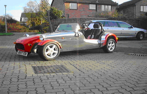 Steve Young At the end of February I finally made the trip to the other side of Eastleigh to meet up with Steve Young, He had collected his kit In May 2002 and was mid-way through his build. I did have another reason to go and see him - he had orginally had a ESC2 like my car but had decided to go fully manual (including the choke) and I was unsure about my carb - and very kindly Steve said I could have the old carb from him free of charge. Once we arrived the first port of call was the garage (where else;) where I had the pleasure of seeing a beutifully built car. Steve had decided to build the car with all the panels and mechanics first before installing the loom and starting the car. The most humbling thing about the build was how very neat and tidy the car had been kept. I must try and take more time over this :) We then and had a cup of tea and a chat - and most of the ime it wasn't about cars! we found a common interest in pubs and ale - which I am sure we will share at a later date. Here is a picture of his car - to be fair it doesn't do the car justice, I'll need to get a picture of the engine bay as well - just to remind me how it can be done!